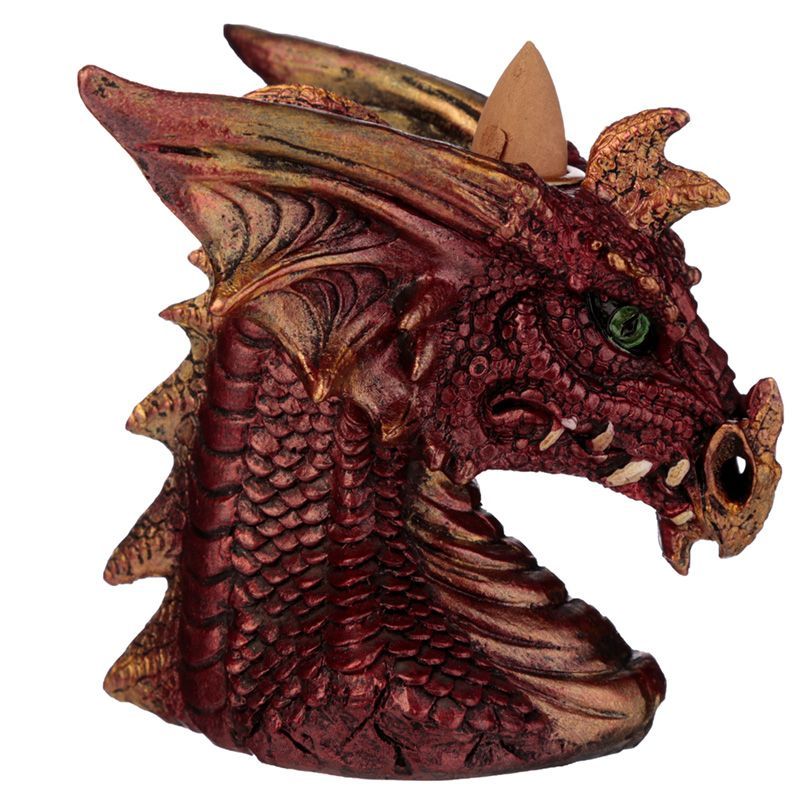 Dragons Head Backflow Incense Burner, Backflow incense flows down through a backflow burner and creates a mist around the product. This item must be placed on a heatproof surface. When backflow incense burns the mist it creates can leave a light residue on the burner and the surface the burner is placed on. This is from natural oils and resins within the incense and can be wiped clean with a damp cloth. Never leave burning incense unattended. Some of our small backflow burners come with a small foam mat that the burner can be placed on when in use, however this is not heat proof so as stated above, the burner must be placed on a heatproof surface before using.